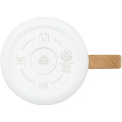 Kubek Bjorn wykonany jest ze stali nierdzewnej z recyklingu z certyfikatem RCS z uchwytem wykonanym z odpowiedzialnie pozyskiwanego drewna bukowego. Miedziana izolacja próżniowa w kubku pomaga utrzymać idealną temperaturę napojów przez długi czas. Ten kubek to świetna alternatywa dla tradycyjnych kubków. Został zaprojektowany w taki sposób, aby zapobiegać przenoszeniu ciepła na zewnątrz kubka. Przetestowany i zatwierdzony zgodnie z niemieckimi przepisami dotyczącymi bezpieczeństwa żywności (LFGB) oraz pod kątem zawartości ftalanów zgodnie z REACH. Pojemność: 360 ml. Wolne od BPA.