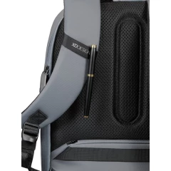 Plecak chroniący przed kieszonkowcami Bobby Edge, wodoodporny materiał, wykonany z RPET, ukryte zamki i kieszenie, wewnątrz przegroda na laptop i tablet, kieszenie z ochroną RFID, odblaskowe paski zwiększające widoczność, pasek do zamocowania na walizce, wzór zastrzeżony®, całkowita zawartość materiałów z recyklingu obliczona na podstawie wagi całkowitej produktu: 14%, ślad węglowy produktu: 6,15 kg CO2