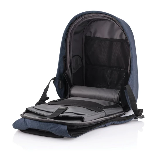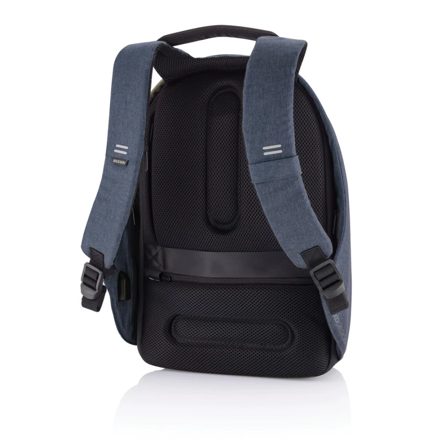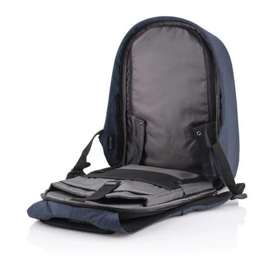 Plecak chroniący przed kieszonkowcami Bobby Hero Regular, wodoodporny i odporny na przecięcia materiał, wykonany z materiału RPET, ukryte zamki i kieszenie, wewnątrz miękkie przegrody na laptopa 15,6" i tablet do 12,9", zintegrowany port USB do ładowania telefonów (power-bank nie jest dołączony), odblaskowe paski zwiększające widoczność, pasek do zamocowania na walizce, wzór zastrzeżony®, ślad węglowy produktu: 6,68 kg CO2