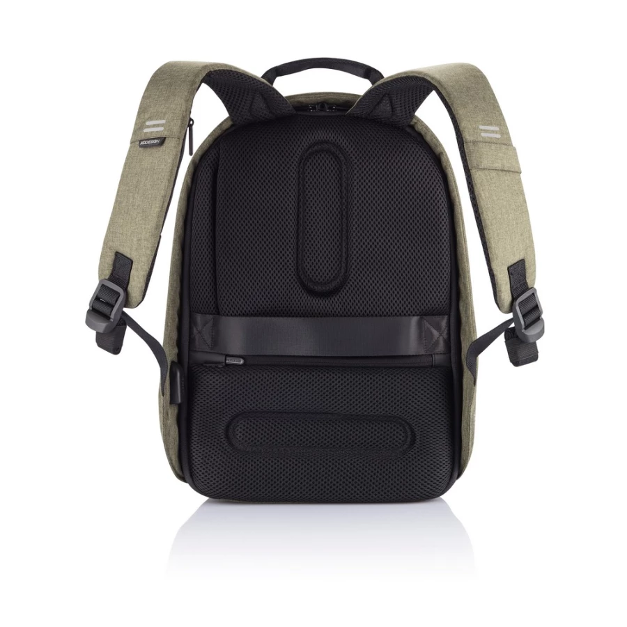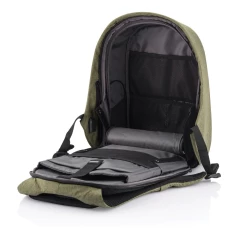 Plecak chroniący przed kieszonkowcami Bobby Hero Small, wodoodporny i odporny na przecięcia materiał, wykonany z przyjaznego środowisku materiału RPET, ukryte zamki i kieszenie, wewnątrz miękkie przegrody na laptopa do 13,3" i tablet do 12,9", zintegrowany port USB do ładowania telefonów (power-bank nie jest dołączony), odblaskowe paski zwiększające widoczność, pasek do zamocowania na walizce, wzór zastrzeżony®, ślad węglowy produktu: 6,28 kg CO2