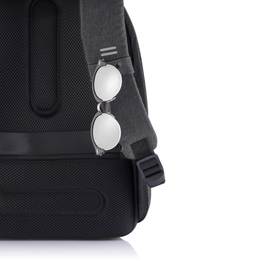 Plecak chroniący przed kieszonkowcami Bobby Hero XL, wodoodporny i odporny na przecięcia materiał, wykonany z przyjaznego środowisku materiału RPET, ukryte zamki i kieszenie, wewnątrz miękkie przegrody na laptopa do 17" i tablet do 12,9", zintegrowany port USB do ładowania telefonów (power-bank nie jest dołączony), odblaskowe paski zwiększające widoczność, pasek do zamocowania na walizce, wzór zastrzeżony®, ślad węglowy produktu: 7,57 kg CO2