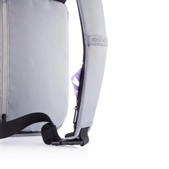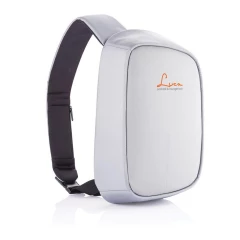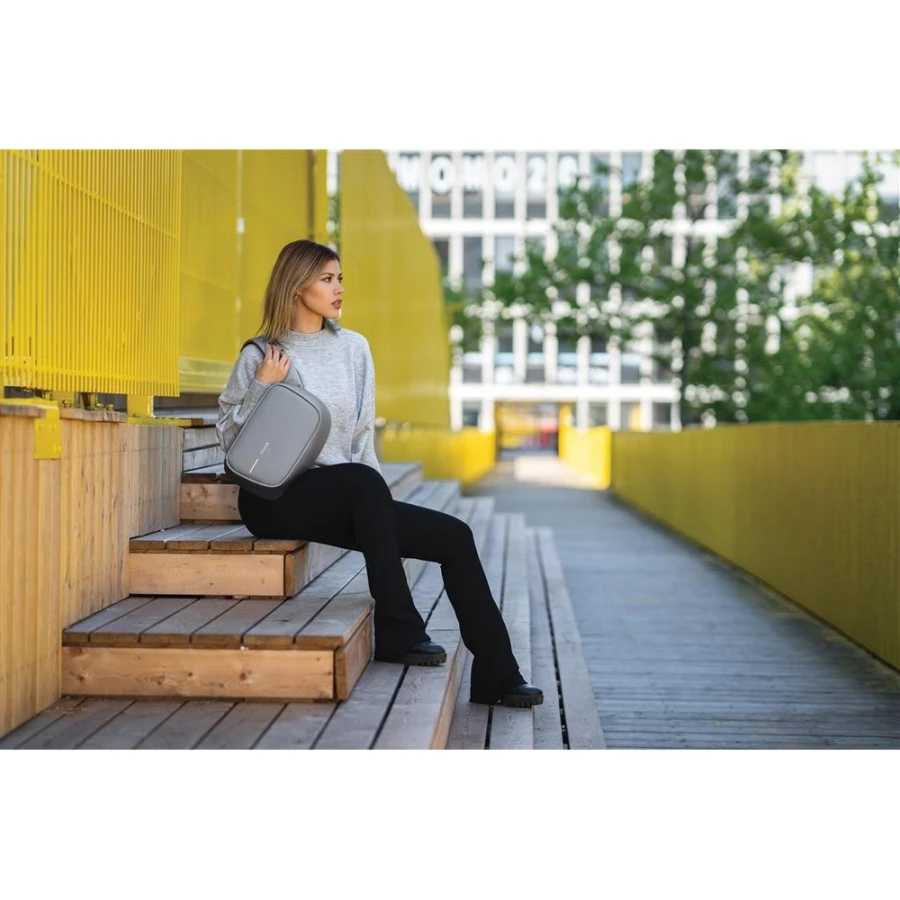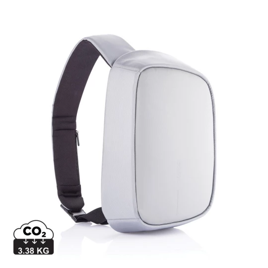 Plecak chroniący przed kieszonkowcami Bobby Sling z miękkim paskiem na ramię, wodoodporny i odporny na przecięcia materiał, 3 punktowa klamra bezpieczeństwa, zintegrowany port USB do ładowania telefonów (power-bank nie jest dołączony), kieszeń RFID, ukryte zamki i kieszenie, ślad węglowy produktu: 3,38 kg CO2