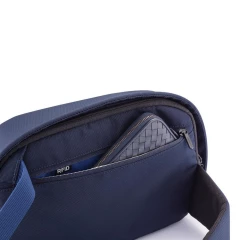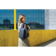 Plecak chroniący przed kieszonkowcami Bobby Sling z miękkim paskiem na ramię, wodoodporny i odporny na przecięcia materiał, 3 punktowa klamra bezpieczeństwa, zintegrowany port USB do ładowania telefonów (power-bank nie jest dołączony), kieszeń RFID, ukryte zamki i kieszenie, ślad węglowy produktu: 3,38 kg CO2
