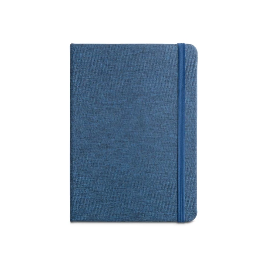 Notes A5 w twardej oprawie wykonanej z poliestru pochodzącego (100% rPET). Posiada 192 strony (70 g/m²) w linie w kolorze kości słoniowej wykonanym z certyfikowanego materiału FSC™ i innych kontrolowanych materiałów, zakładkę ze wstążki, gumkę i wewnętrzną kieszeń. 140 x 210 mm