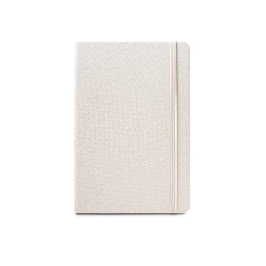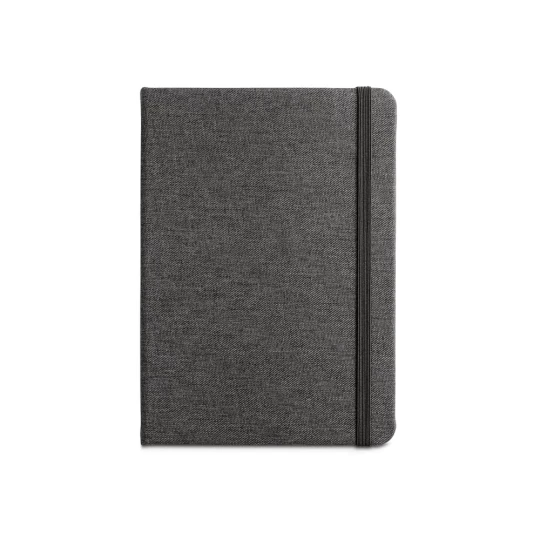 Notes A5 w twardej oprawie wykonanej z poliestru pochodzącego (100% rPET). Posiada 192 strony (70 g/m²) w linie w kolorze kości słoniowej wykonanym z certyfikowanego materiału FSC™ i innych kontrolowanych materiałów, zakładkę ze wstążki, gumkę i wewnętrzną kieszeń. 140 x 210 mm