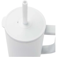 Kubek z trwałą ścianką zewnętrzną wykonaną ze stali nierdzewnej z recyklingu, z certyfikatem RCS i z wewnętrzną ścianką z tworzywa. Zawiera silikonową słomkę przeznaczoną do kontaktu z żywnością, która zapobiega rozchlapywaniu, oraz nakładaną pokrywkę, co zapewnia przyjemne wrażenia podczas picia. Ten kubek nadaje się również do gorących napojów, jednak nie zaleca się picia ich przez słomkę. Aby napój ostygł przed spożyciem, należy zdjąć pokrywkę. Pojemność: 900 ml. Tylko do mycia ręcznego.