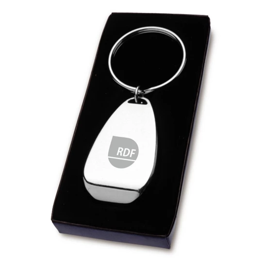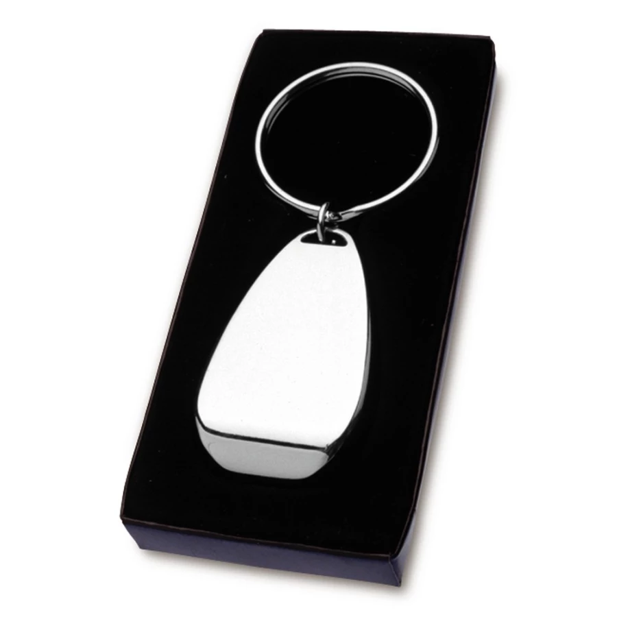 Otwieracz do butelek z brelokiem umożliwiającym przyczepienie do kluczy, czarne pudełko podarunkowe w komplecie, produkt wykonany z metalu