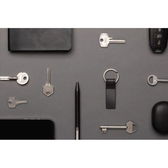 Brelok do kluczy, wykonany ze stopu cynku z recyklingu oraz PU, całkowita zawartość materiałów z recyklingu obliczona w oparciu o wagę całkowitą przedmiotu: 67%