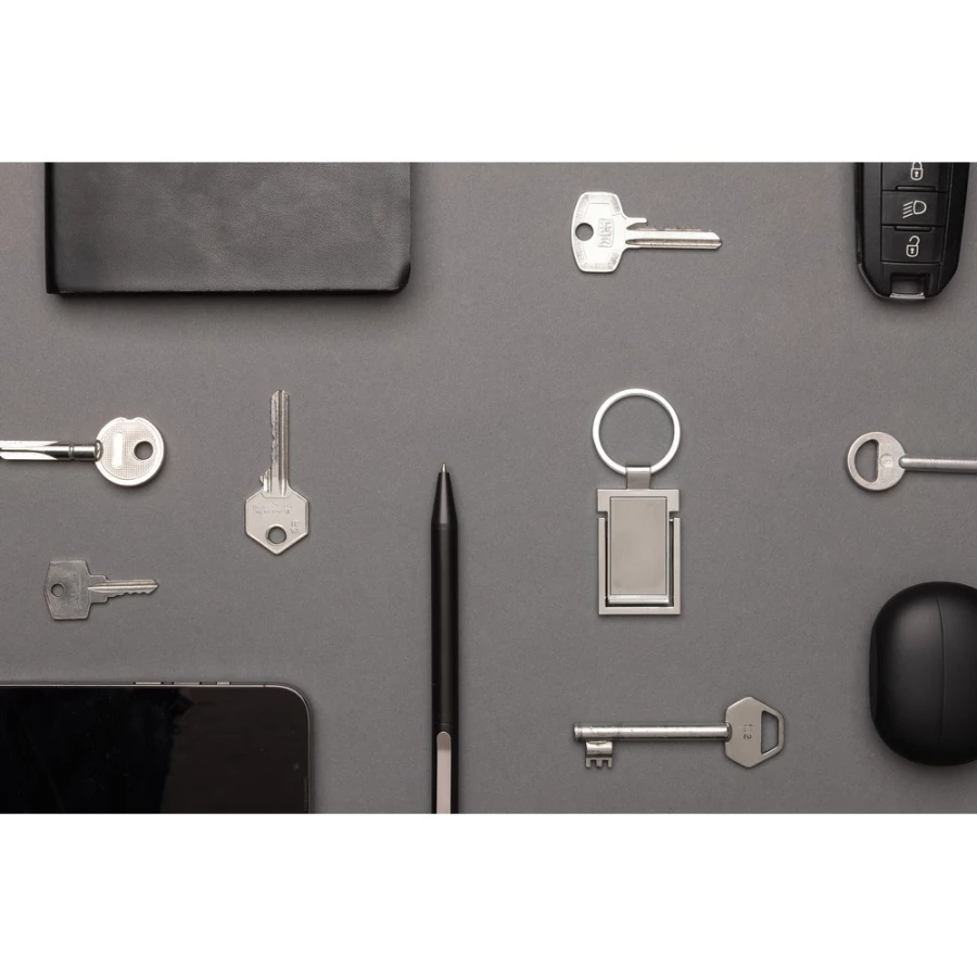 Brelok do kluczy, stojak na telefon, wykonany ze stopu cynku z recyklingu oraz PU, całkowita zawartość materiałów z recyklingu obliczona w oparciu o wagę całkowitą przedmiotu: 86%
