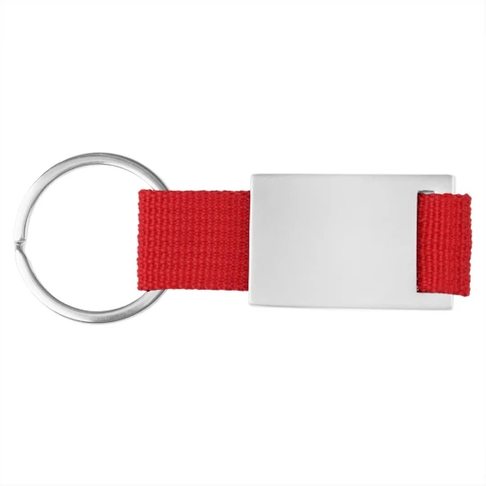 Brelok do kluczy z metalową plakietką przeznaczoną pod znakowanie, produkt wykonany z metalu i poliestru
