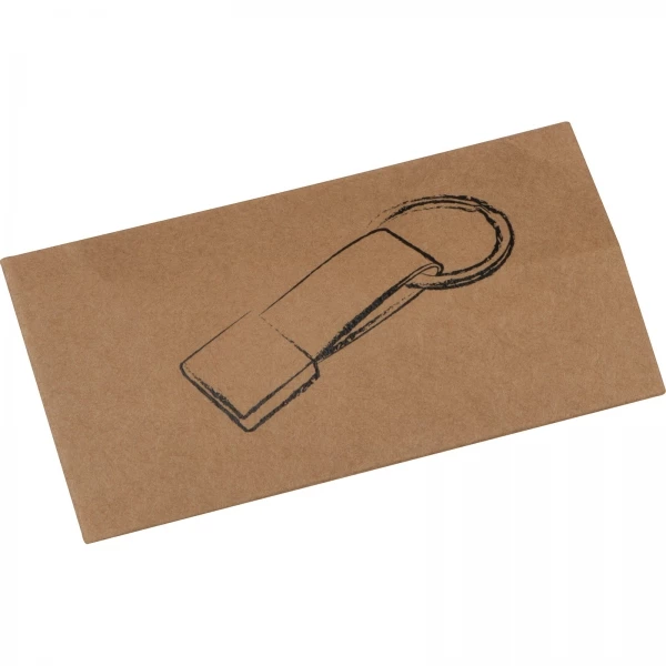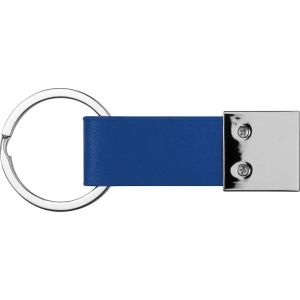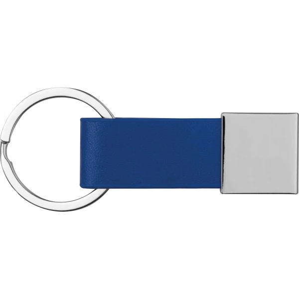 Brelok składający się ze skóropodobnego paska (PU) i metalowej blaszki.