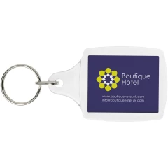 Breloczek A5 z metalowym pękiem na klucze. Zaprojektowany do noszenia papierowej wkładki lub zdjęcia paszportowego. Wymiary wkładu do druku: 4,5 cm x 3,5 cm.