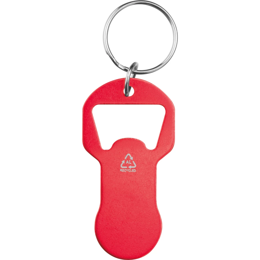 Brelok z otwieraczem do butelek i żetonem do wózka z aluminium z recyklingu OLIWIER - czerwony - (95445-05)