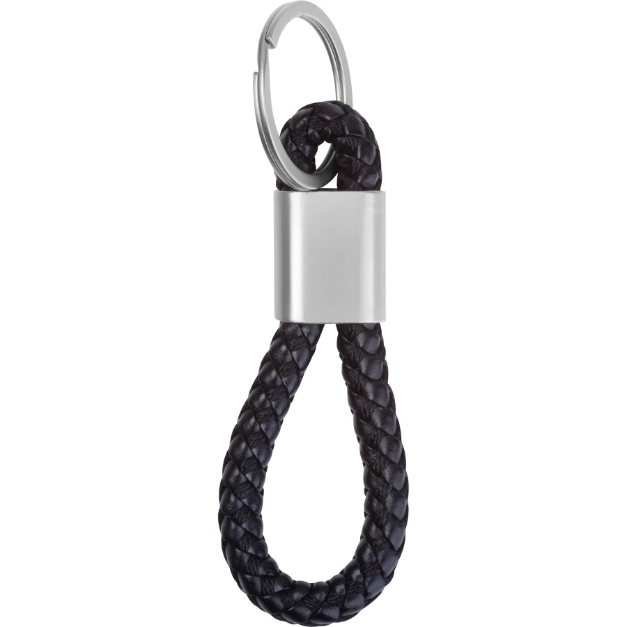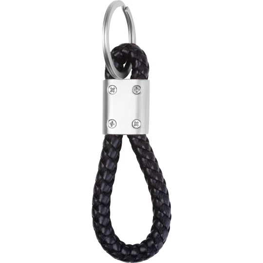 Metalowy brelok z wytrzymałym, plecionym sznurkiem z PU.