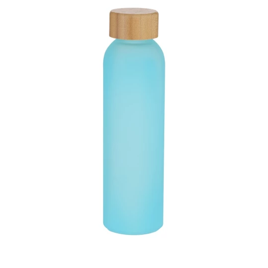 Butelka sportowa 500 ml z bambusową zakrętką, produkt wykonany ze szkła z recyklingu i bambusa