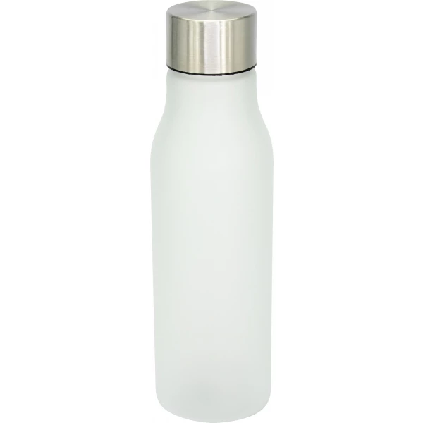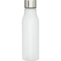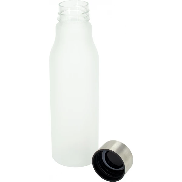 Butelka o pojemności 550 ml, wykonana z przyjemnego w dotyku plastiku z gumowym wykończeniem i metalową zakrętką.