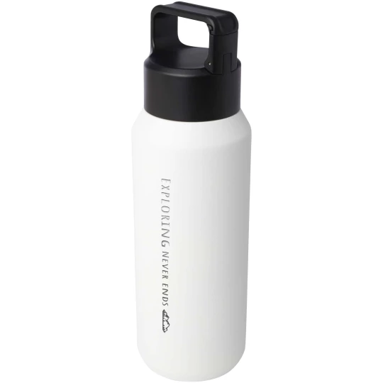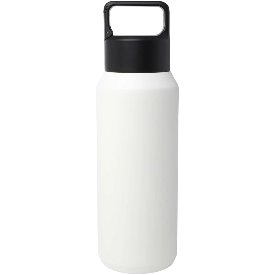 Butelka na wodę z podwójną ścianką ze stali nierdzewnej z funkcją izolacji próżniowej, wykonana z miedzi, z certyfikatem RCS, wyposażona w zakrętkę z wbudowanym karabińczykiem, dzięki czemu można ją łatwo przymocować do torby lub paska. Nadaje się również do napojów gazowanych. Zapakowane w pudełko upominkowe wykonane z kartonu z recyklingu. Pojemność: 600 ml.