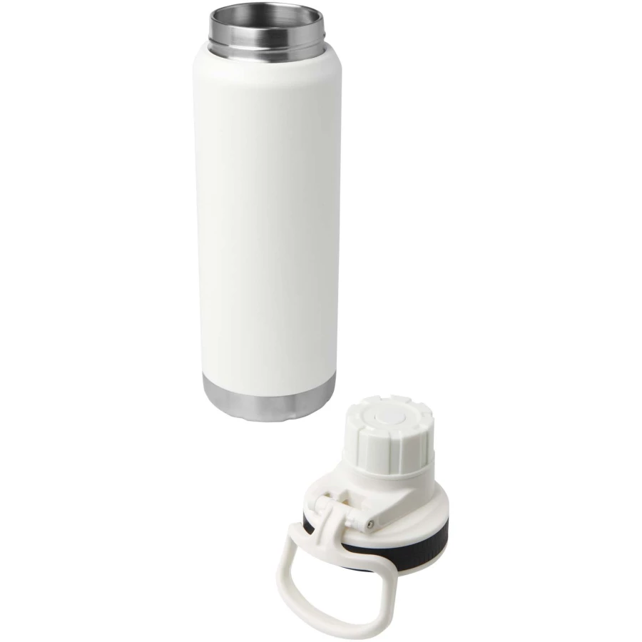 Butelka na wodę z podwójną ścianką ze stali nierdzewnej, izolowana próżniowo i miedziana, z certyfikatem RCS i szczelną zakrętką. Posiada szeroki otwór ułatwiający napełnianie i czyszczenie oraz wygodną rączkę do przenoszenia połączoną z pokrywką. Odpowiednia do gazowanych napojów. Trwała powłoka proszkowa na zewnątrz. Zapakowane w pudełko upominkowe wykonane z kartonu z recyklingu. Pojemność: 700 ml.