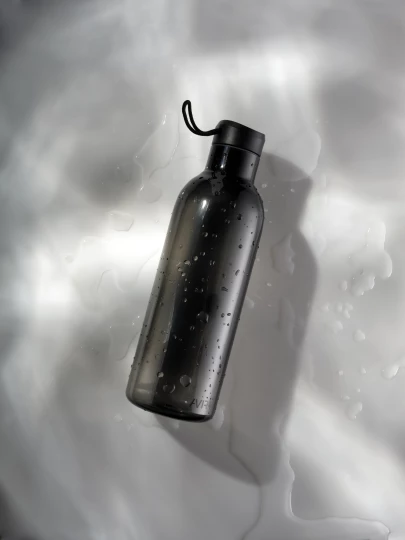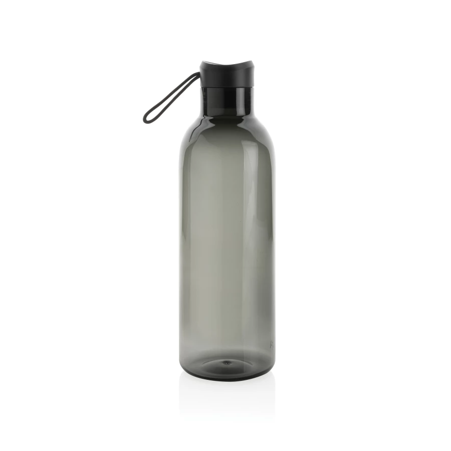 Butelka sportowa 1000 ml, wykonana z RPET z certyfikatem RCS, całkowita zawartość materiałów z recyklingu obliczona na podstawie wagi całkowitej przedmiotu: 86%, w pudełku z papieru kraftowego z certyfikatem FSC®, zalecana do zimnych napojów, wyłącznie mycie ręczne, pudełko można wykorzystać jako stojak na telefon lub doniczkę