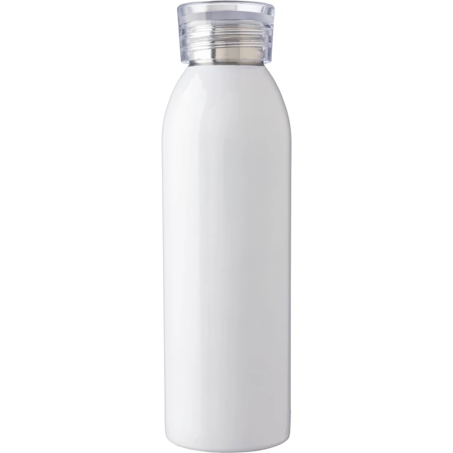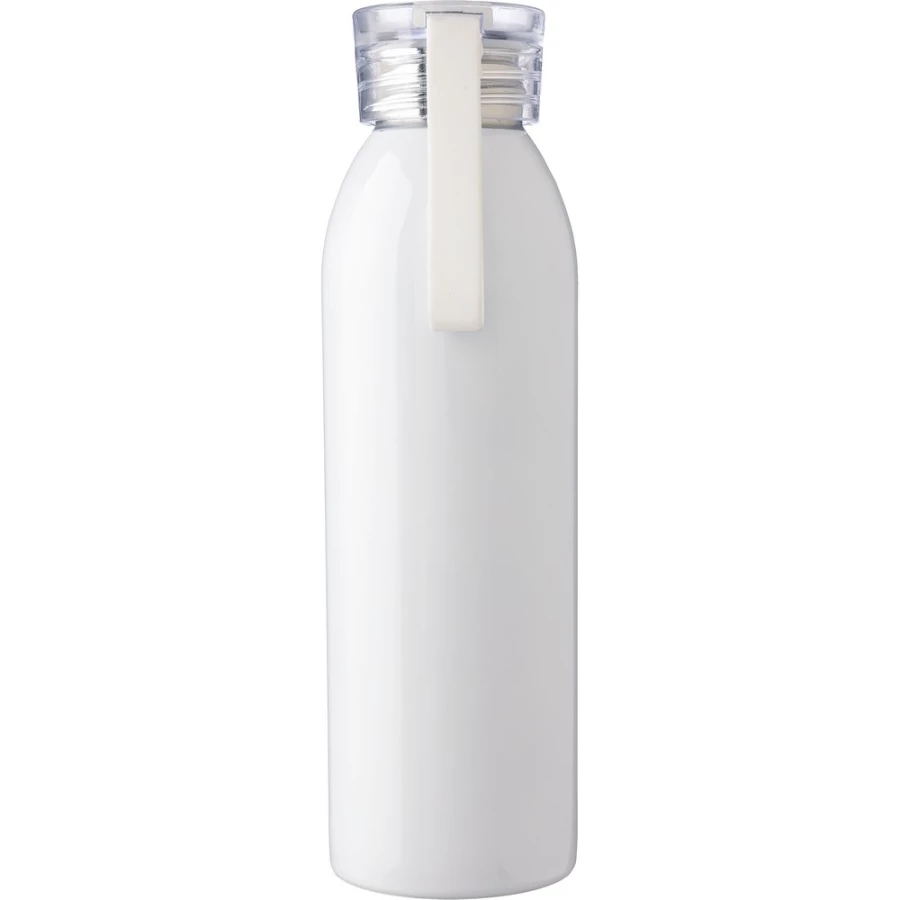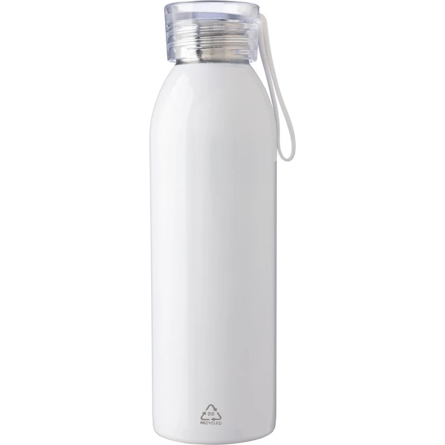 Butelka sportowa 650 ml wykonana ze stali nierdzewnej z recyklingu, zawiera pojedynczą ściankę, silikonowy uchwyt zwiększający wygodę użytkowania, ikona stali nierdzewnej recyklingu na produkcie, produkt zapakowany w brązowy kartonik
