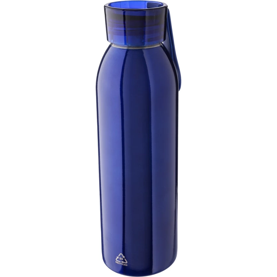 Butelka sportowa 650 ml wykonana ze stali nierdzewnej z recyklingu, zawiera pojedynczą ściankę, silikonowy uchwyt zwiększający wygodę użytkowania, ikona stali nierdzewnej recyklingu na produkcie, produkt zapakowany w brązowy kartonik