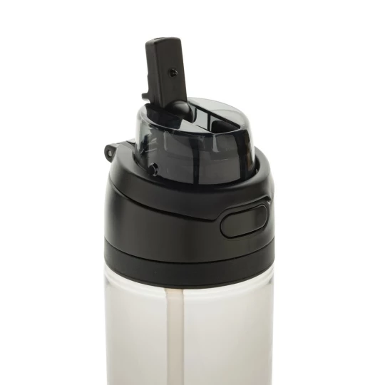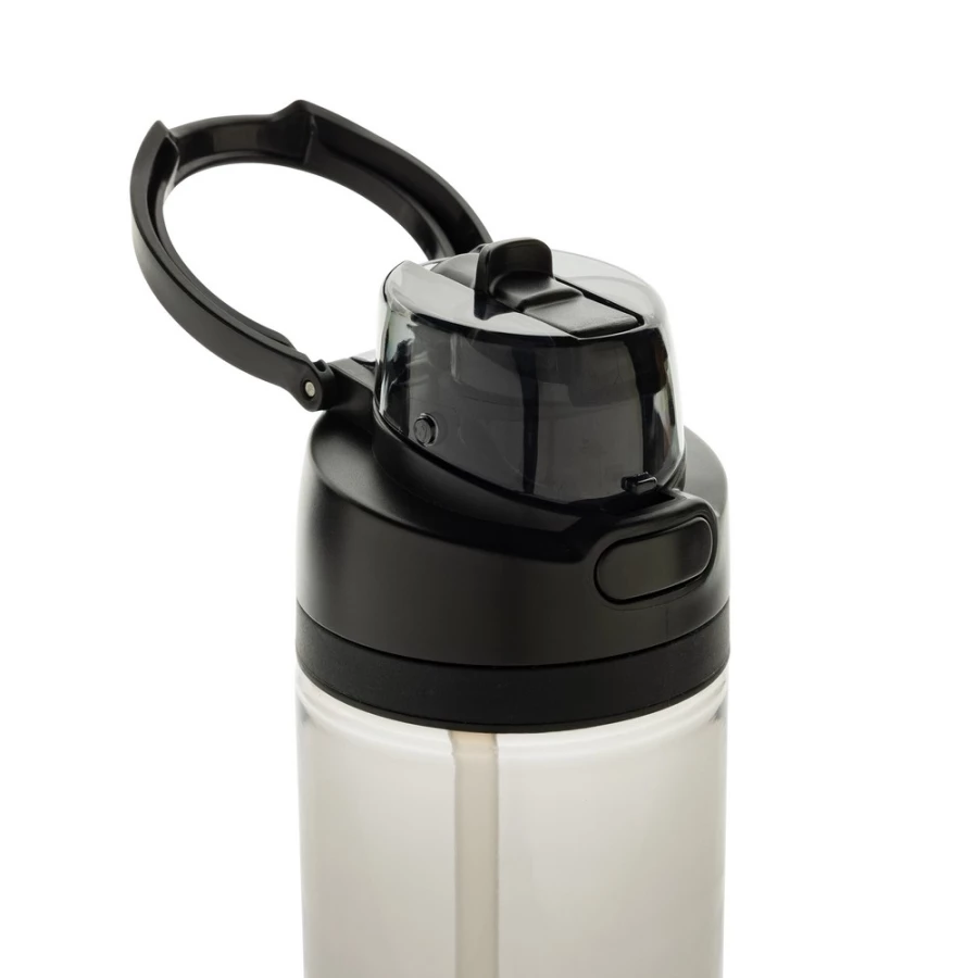 Butelka sportowa 800 ml, posiada słomkę i szeroki otwór do picia, wieczko z blokadą, uchwyt, wykonana z RPET, całkowita zawartość materiałów z recyklingu obliczona na podstawie wagi całkowitej produktu: 47%