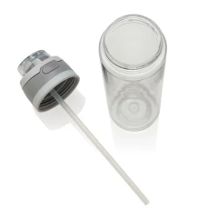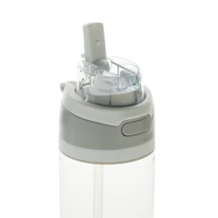 Butelka sportowa 800 ml, posiada słomkę i szeroki otwór do picia, wieczko z blokadą, uchwyt, wykonana z RPET, całkowita zawartość materiałów z recyklingu obliczona na podstawie wagi całkowitej produktu: 47%