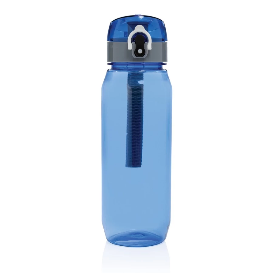 Butelka sportowa 800 ml, uchwyt, wykonana z RPET, nie wymaga obsługi oburącz, całkowita zawartość materiałów z recyklingu obliczona na podstawie wagi całkowitej przedmiotu: 73%, wyłącznie mycie ręczne, zalecana wyłącznie do zimnej wody, w pudełku z papieru kraftowego