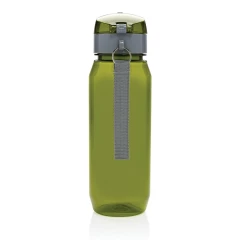 Butelka sportowa 800 ml, uchwyt, wykonana z RPET, nie wymaga obsługi oburącz, całkowita zawartość materiałów z recyklingu obliczona na podstawie wagi całkowitej przedmiotu: 73%, wyłącznie mycie ręczne, zalecana wyłącznie do zimnej wody, w pudełku z papieru kraftowego