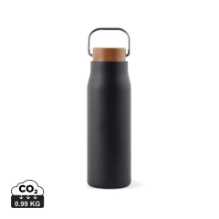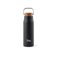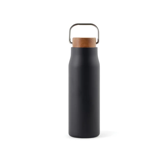 Butelka termiczna 300 ml, podwójne ścianki ze stali nierdzewnej z próżnią pomiędzy, drewniane wieczko, uchwyt, wykonana ze stali nierdzewnej z recyklingu, całkowita zawartość materiałów z recyklingu obliczona na podstawie wagi całkowitej przedmiotu: 69%, wyłącznie mycie ręczne