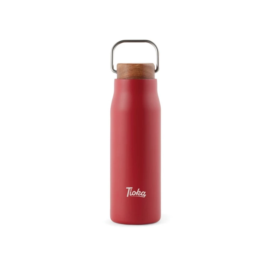 Butelka termiczna 300 ml, podwójne ścianki ze stali nierdzewnej z próżnią pomiędzy, drewniane wieczko, uchwyt, wykonana ze stali nierdzewnej z recyklingu, całkowita zawartość materiałów z recyklingu obliczona na podstawie wagi całkowitej przedmiotu: 69%, wyłącznie mycie ręczne