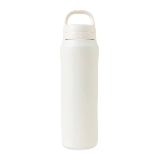 Butelka termiczna 470 ml, posiada podwójne ścianki ze stali nierdzewnej z próżnią między ściankami, co spowalnia oddawanie temperatury na zewnątrz, zachowując funkcje termosu, wykonana z materiałów z recyklingu