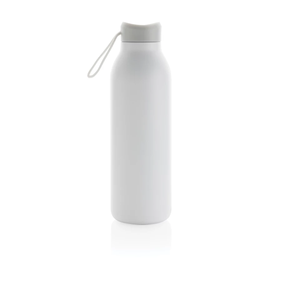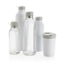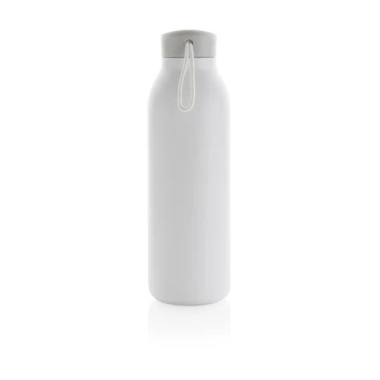 Butelka termiczna 500 ml, podwójne ścianki ze stali nierdzewnej z recyklingu z próżnią pomiędzy, zawartość materiałów z recyklingu obliczona na podstawie wagi całkowitej przedmiotu: 97%, utrzymuje temperaturę napojów ciepłych do 10 godzin oraz zimnych do 20 godzin, pasuje do większości uchwytów samochodowych, w pudełku z certyfikatem FSC®, klasa termiczna: A, ślad węglowy produktu: 1,35 kg CO2