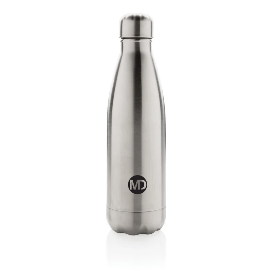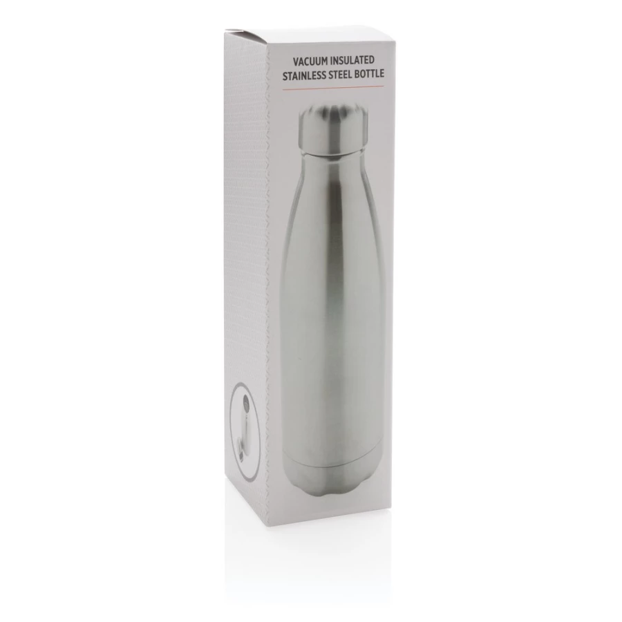 Butelka termiczna 500 ml, podwójne ścianki ze stali nierdzewnej z próżnią pomiędzy, pasuje do większości uchwytów, utrzymuje temperaturę napojów gorących do 5 godzin oraz zimnych do 15 godzin