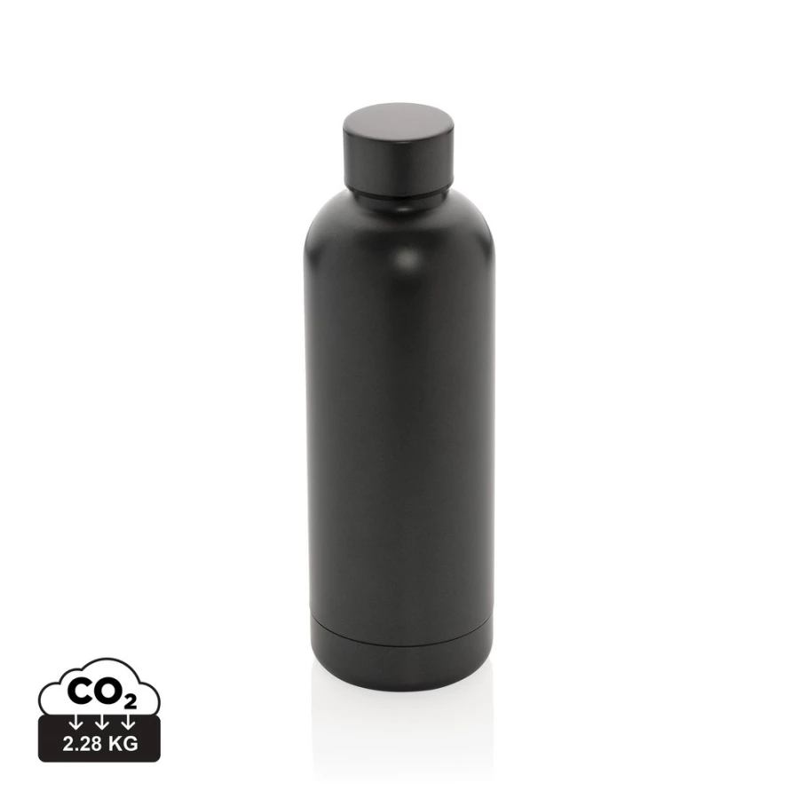 Butelka termiczna 500 ml, wykonana z materiałów pochodzących z recyklingu z certyfikatem RCS, całkowita zawartość materiałów z recyklingu obliczona na podstawie wagi całkowitej przedmiotu: 80%, podwójne ścianki z próżnią pomiędzy, minimalistyczne wykończenie, w opakowaniu z papieru kraftowego, utrzymuje temperaturę napojów gorących do 5 godzin oraz zimnych do 15 godzin