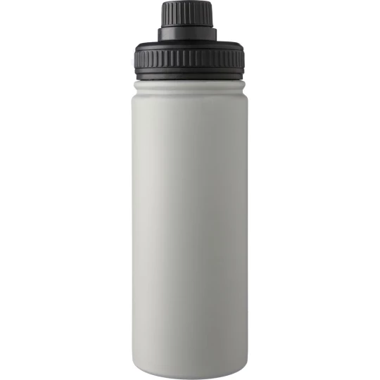 Butelka termiczna 500 ml, posiada podwójne ścianki ze stali nierdzewnej z próżnią między ściankami dzięki czemu zachowuje funkcje termosu i długo utrzymuje temperaturę nie oddając jej na zewnątrz, zakręcana wylewka we wieczku, uchwyt ułatwiający przenoszenie lub przypięcie do innego przedmiotu, zapakowana w brązowy kartonik, produkt wykonany ze stali nierdzewnej i PU