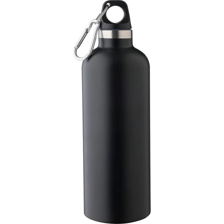 Butelka termiczna 500 ml, posiada podwójne ścianki, które spowalniają oddawanie temperatury na zewnątrz, utrzymuje temperaturę napojów: ciepłych do 8 godzin, zimnych do 12 godzin, posiada matowe wykończenie (z wyjątkiem koloru -32), ikona recyklingu na produkcie, nie nadaje się do mycia w zmywarce, pakowana pojedynczo w brązowe kartonowe pudełko, produkt wykonany stali nierdzewnej z recyklingu, nakrętka z PP, aluminiowy karabińczyk