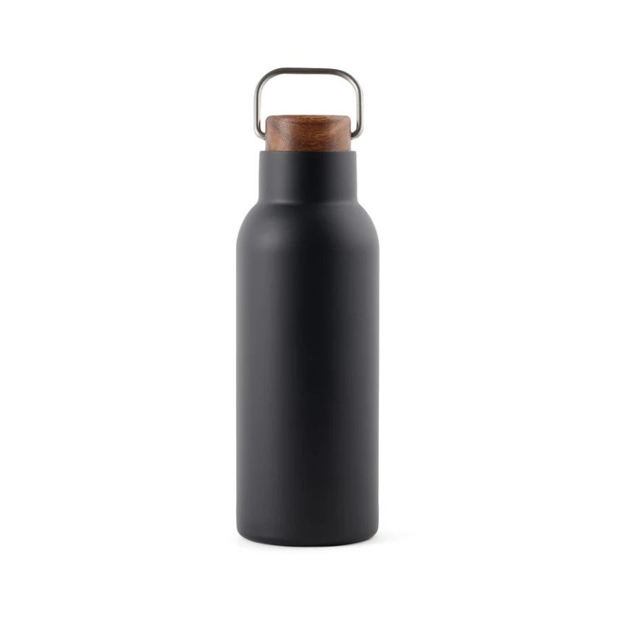 Butelka termiczna 580 ml, podwójne ścianki ze stali nierdzewnej z próżnią pomiędzy, wykonana ze stali nierdzewnej z recyklingu z certyfikatem RCS, drewniane wieczko z uchwytem, całkowita zawartość materiałów z recyklingu obliczona na podstawie wagi całkowitej przedmiotu: 75%, wyłącznie mycie ręczne, w pudełku z papieru kraftowego