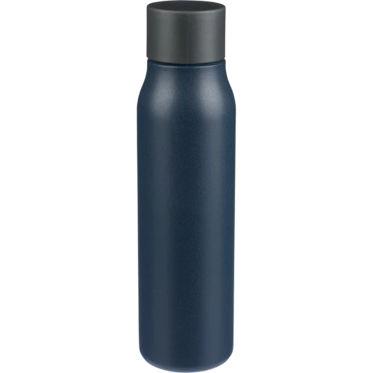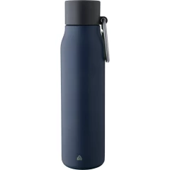 Butelka termiczna 600 ml, uchwyt ułatwiający przenoszenie, utrzymuje temperaturę napojów – ciepłych do 6 godzin, zimnych do 9 godzin, na przedniej części ikona aluminium z recyklingu na produkcie, pakowana pojedynczo w brązowe kartonowe pudełko, wnętrze wykonane ze stali nierdzewnej 304, zewnętrzna warstwa ze stali nierdzewnej 201,szczelna czarna nakrętka z PP, aluminiowy karabińczyk