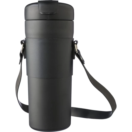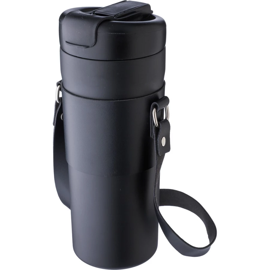 Butelka termiczna 730 ml posiada podwójne ścianki ze stali nierdzewnej z próżnią między ściankami, co spowalnia oddawanie temperatury na zewnątrz, zachowując funkcje termosu, zawiera pokrowiec z paskiem do noszenia butelki podczas podróży, pokrywka ze składanym dzióbkiem i słomką w środku oraz oddzielnym otworem do picia, produkt wykonany ze stali nierdzewnej, PP, PU i silikonu, utrzymuje temperaturę napojów gorących do 20 godzin +leakproof