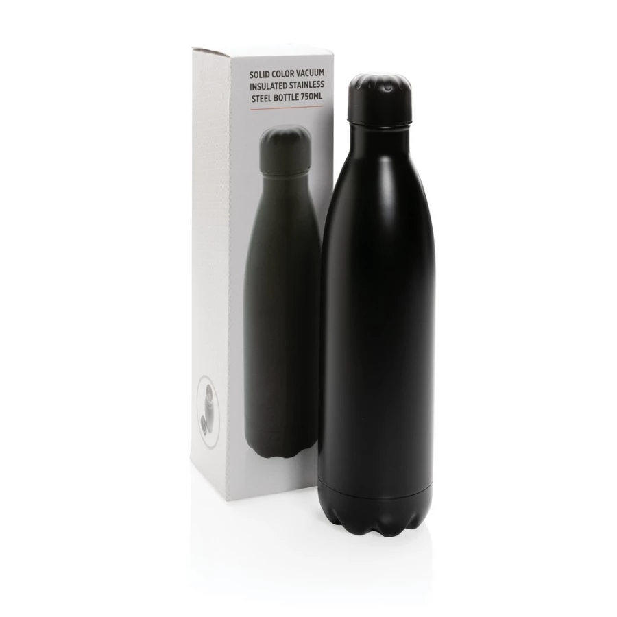 Butelka termiczna 750 ml, podwójne ścianki ze stali nierdzewnej z próżnią pomiędzy, pasuje do większości uchwytów na kubki, utrzymuje temperaturę napojów gorących do 20 godzin oraz zimnych do 15 godzin