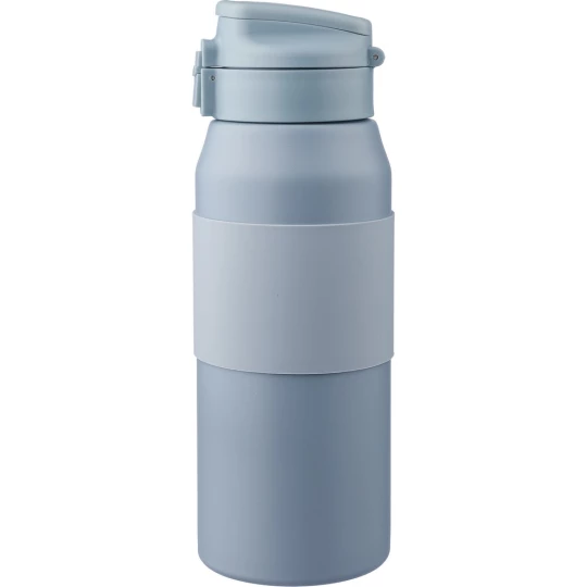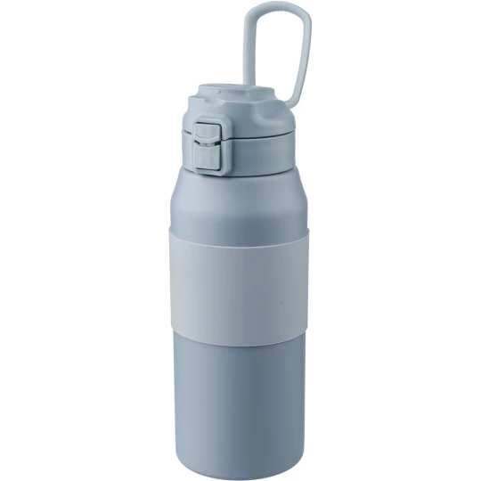 Butelka termiczna 800 ml, posiada podwójne ścianki ze stali nierdzewnej z próżnią między ściankami, co spowalnia oddawanie temperatury na zewnątrz, zachowując funkcje termosu, silikonowy uchwyt zwiększający wygodę użytkowania, uchwyt znajduje się w nakrętce, specjalny dzióbek połączony ze słomką ułatwiający picie, zapakowana w brązowy kartonik, produkt wykonany ze stali nierdzewnej, PP i silikonu, utrzymuje temperaturę napojów gorących do 20 godzin +leakproof