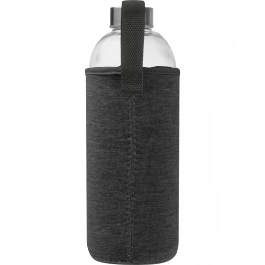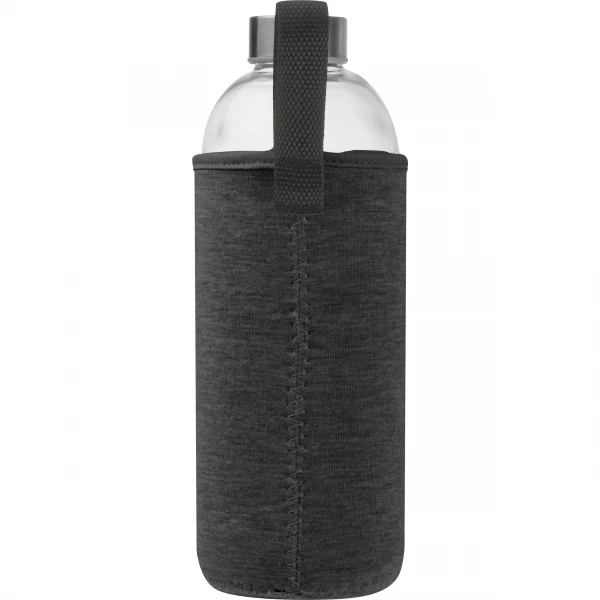 Szklana butelka o pojemności 1000 ml w neoprenowym etui, z zakrętką ze stali nierdzewnej.