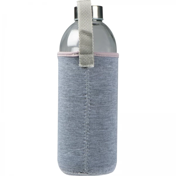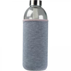 Szklana butelka o pojemności 1000 ml w neoprenowym etui, z zakrętką ze stali nierdzewnej.