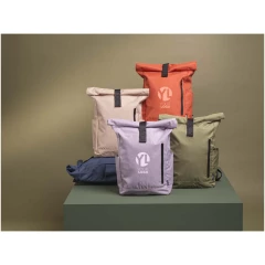 Praktyczny, wytrzymały i hydrofobowy plecak wykonany z poliestru pochodzącego z recyklingu z certyfikatem GRS z dużą wewnętrzną przegrodą z 15,6-calową przegrodą na laptopa, przednią kieszenią zapinaną na zamek błyskawiczny i 2 bocznymi kieszeniami. Wyściełane oparcie pleców, regulowane i wyściełane paski na ramię, pętla do przenoszenia i poręczne zwijane zamknięcie z systemem zatrzasków na górze. Idealna torba do codziennego użytku, z minimalnym śladem ekologicznym.