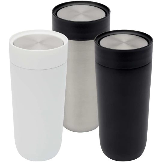 Wysokiej jakości kubek na wynos z poręcznym mechanizmem otwierania typu push-top ze stali nierdzewnej umożliwiającym obsługę jedną ręką. Obudowa ze stali nierdzewnej z certyfikatem RCS i trwałą powłoką proszkową. Pokrywka wykonana jest ze stali nierdzewnej z certyfikatem RCS oraz polipropylenu. Miedziowanie i powłoka ceramiczna. Pasuje do większości standardowych samochodowych uchwytów na kubki. Utrzymuje temperaturę napojów gorących przez 12 godzin a zimnych przez 24 godziny. Zapakowana w pudełko upominkowe wykonane z kartonu z recyklingu. Pojemność: 350 ml.