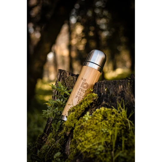 Termos o podwójnych ściankach z izolacją próżniową z bambusa i stali nierdzewnej. Butelka ma pojemność do 450 mL. Dostarczany w pudełku upominkowym z papieru kraft. Ponieważ produkt jest wykonany z naturalnych materiałów, kolor produktu oraz wynik drukowania mogą się różnić w zależności od produktu. ø63 x 251 mm