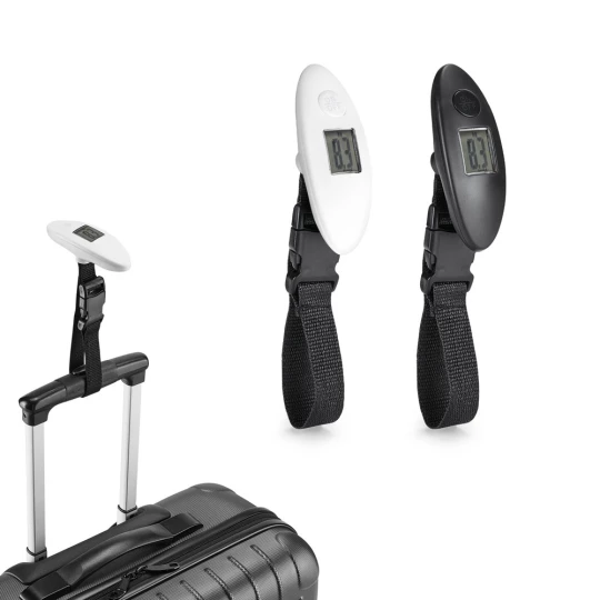 Cyfrowa mini-waga do bagażu wykonana z ABS. Idealna do walizek. Maksymalna waga: 40 kg. Zawiera 1 baterię CR2032. 37 x 100 x 27 mm