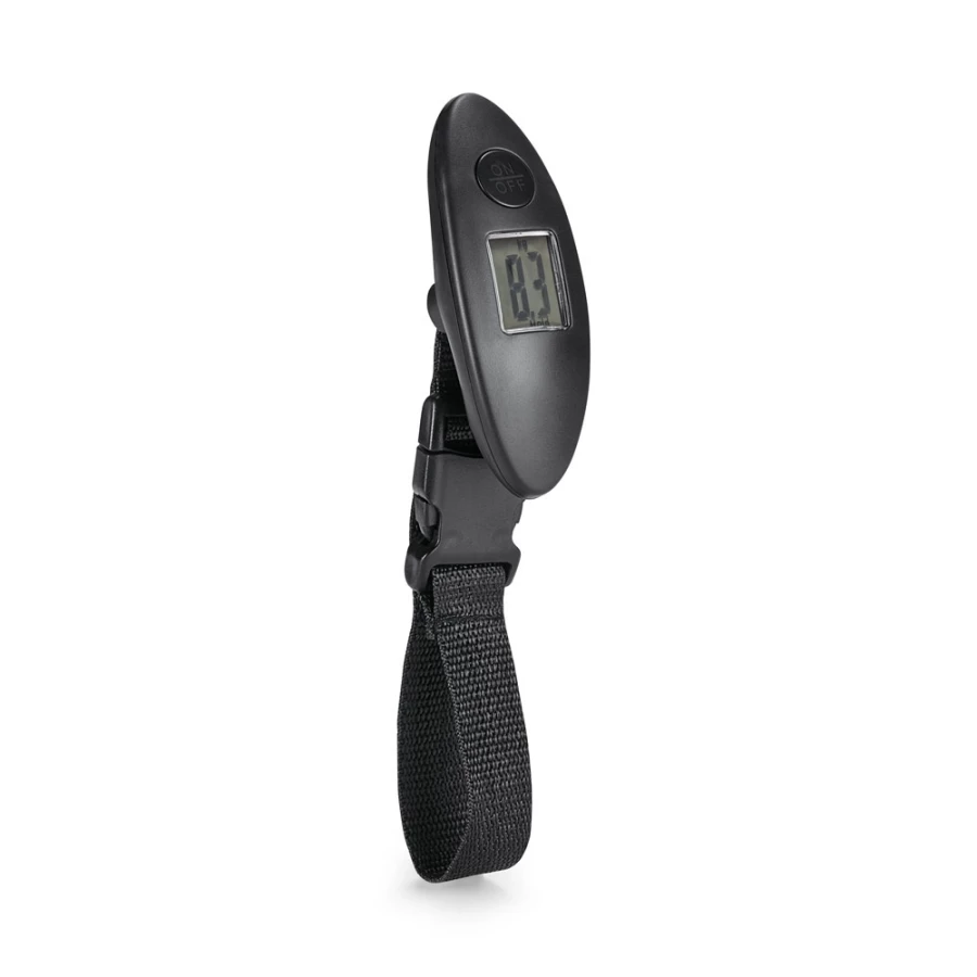 Cyfrowa mini-waga do bagażu wykonana z ABS. Idealna do walizek. Maksymalna waga: 40 kg. Zawiera 1 baterię CR2032. 37 x 100 x 27 mm