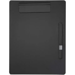 Clast podkładka do pisania z klipsem łączy w sobie elegancki design ze skóry PU z praktycznymi funkcjami przydatnymi zarówno podczas spotkań, jak i w codziennym użytkowaniu. Pasuje do standardowych stron A4 i zawiera magnetyczny klips, zszyte krawędzie oraz wbudowaną pętelkę na długopis. W środku znajduje się 26 kartek papieru w linie o gramaturze 65 g/m² oraz długopis z górną częścią korpusu wykonaną z tworzyw sztucznych pochodzących z recyklingu i dolną częścią korpusu wykonaną z aluminium pochodzącego z recyklingu z certyfikatem RCS. Długopis Juana jest również dostępny osobno. Wymiary podkładki do pisania 25,5 × 33 cm. Kolor tuszu długopisu: czarny.